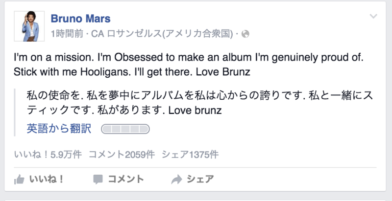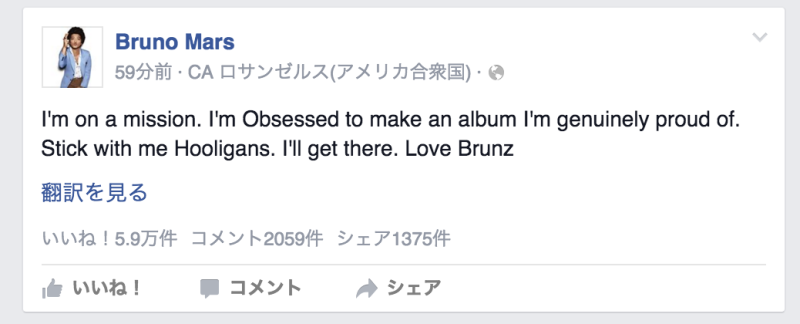 このとっても短いBruno Marsの投稿。