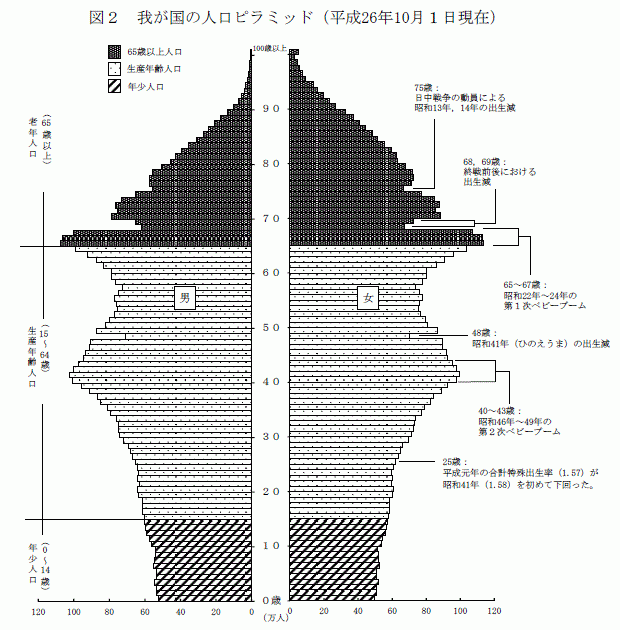 総務省統計局が発表した2014年10月1日の時点での人口幅です。