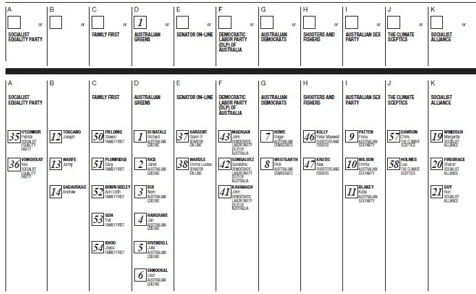 投票の仕方は、2通りあります。1つ目は投票したい政党に「1」と記入するやり方です。上の用紙の上部がその例ですね。日本の比例代表に似た形です。
