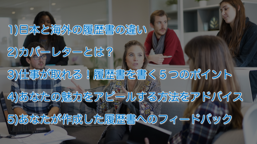 では、この英文履歴書作成ミニコースでお伝えする内容をご紹介しますね。