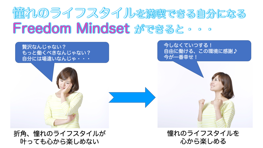 では、Freedom Mindset とOnline Business の構築ができると、一体どうなれるのか?を1つずつ詳しくお伝えしますね。