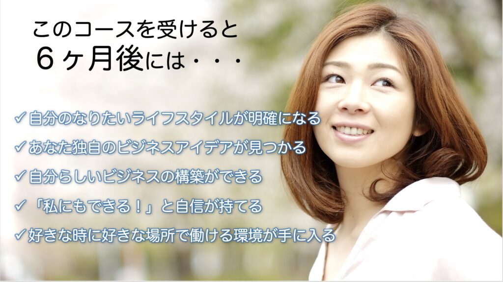 あなたには「良い話を聞いた!」「なるほどね〜」では決して終わらせてほしくないと思っています。本当に「憧れのライフスタイル」を実現させてほしいですし、それに向けてあなたが実践できるコースにしたいと。そう思った時、ただ情報をお伝えして終わりといった従来のコンサルティングではダメだなと思ったのです。そこで・・・